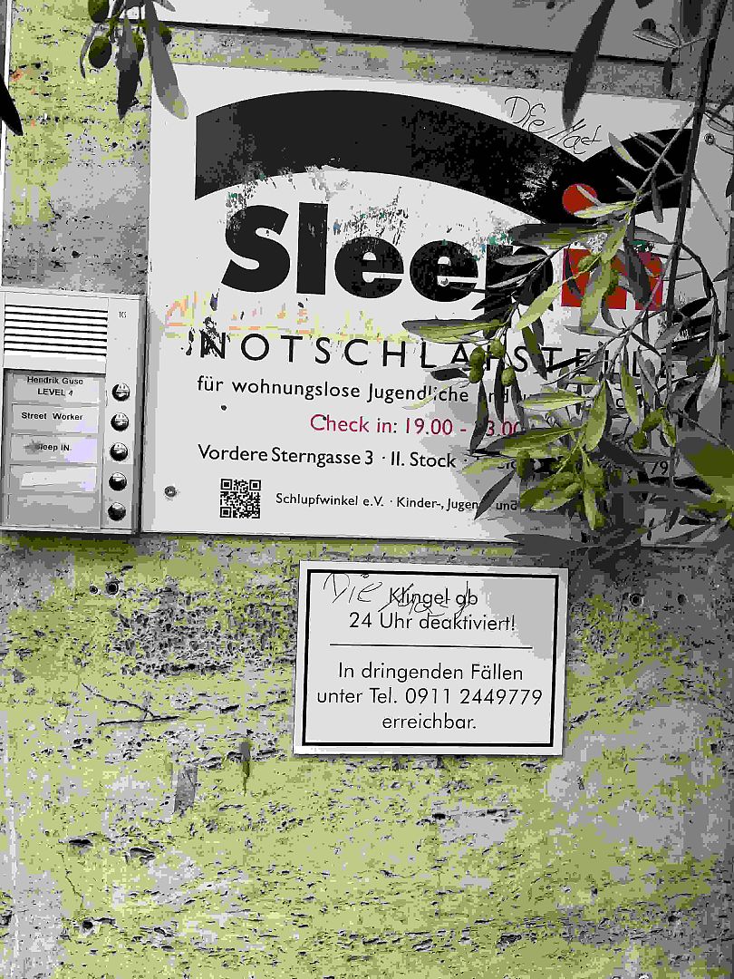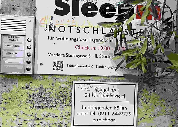 - Ein ehemaliger Obdachloser zeigte uns mehrere Anlaufstellen für Wohnungslose, wie beispielsweise die Notfallschlafstelle „Sleepin“ für Jugendliche oder die Drogenhilfestelle „Mudra“. Außerdem gab er interessante Einblicke in den Alltag obdachloser Menschen in Nürnberg.
